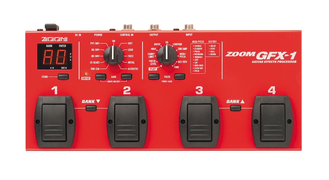 Once upon a time the GFX-1 was available in vibrant red and, apparently, purple. Prince would've loved one, I bet. The unit feels sturdy with its full-metal casing. The knobs and buttons seem also durable enough, although the four footswitches are a bit on the petite side.